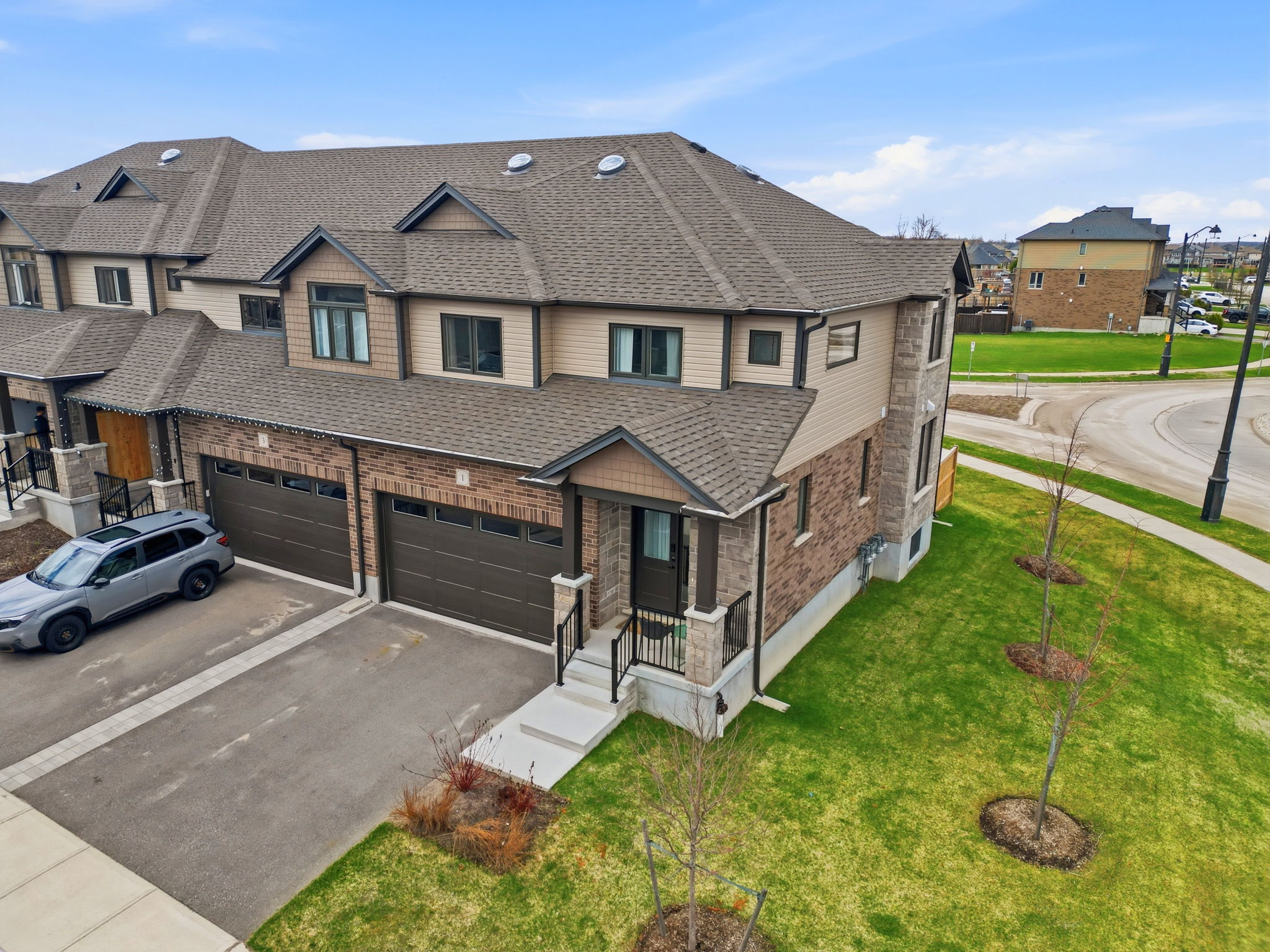 Upgraded end-unit freehold townhome in Grand Valley offering 1,900+ sq ft of bright, functional space. Features 3 bedrooms, 3 baths, hardwood floors, and a sun-filled open layout with oversized windows.